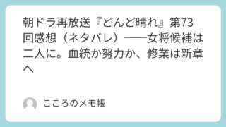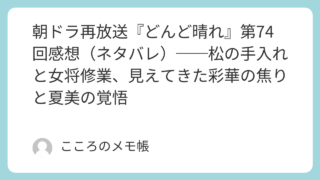 2026年1月14日放送の 『どんど晴れ』 第75回は、女将修業という名のもとで行われる「指導」と「排除」、そしてその狭間で夏美が何を選び、何を学ぼうとしたのかが強く印象に残る回だった。彩華は板場や仲居たちに受け入れられ、若女将候補として順...