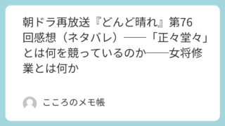 朝ドラ再放送『どんど晴れ』第76回感想(ネタバレ)──「正々堂々」とは何を競っているのか──女将修業とは何か