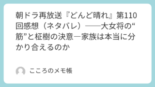 2026年2月24日放送『どんど晴れ』第110回。遠野で父・政良と和解した柾樹。しかし加賀美屋に戻ると、待っていたのは母・カツノの強い拒絶だった。「大女将として許せない」その言葉の直後に倒れるカツノ。家を守ってきた者の“筋”とは何か。そして...