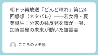 2026年3月11日に放送された『どんど晴れ』第123回。神社での結婚式は厳かな雰囲気の中で無事に執り行われた。一方その頃、加賀美屋の離れでは大女将・カツノが病床で静かな時間を過ごしていた。まるで結婚式の様子が見えているかのように微笑むカツ...