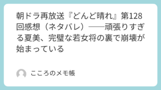 2026年3月17日に放送された『どんど晴れ』第128回。カツノの死から数日。加賀美屋ではすでに新しい日常が動き出していた。若女将となった夏美は、仲居の配置や客対応、帳場との連携までそつなくこなし、周囲からの評価も上々。旅館は明るくなったと...