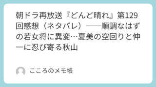 2026年3月18日に放送された『どんど晴れ』第129回。今回は全体としては前に進んでいるはずなのに、どこか不穏さが残る回だった。柾樹の経営改革案は銀行にも評価され、加賀美屋にはようやく現実的な未来が見え始める。夏美も若女将としての仕事をこ...
