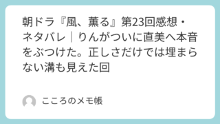 朝ドラ 朝ドラ『風、薫る』第22回感想・ネタバレ|りんの何気ない一言が、直美の心の殻に初めて触れたのかもしれない