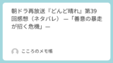 第108回は、生活の細部が人間関係を一歩進める回でした。洗濯物で恋が近づき、桃缶で家族がほぐれ、医師の一言で長いトンネルの出口が見える。次は退院後の暮らしの設計と、神谷×安乃の“実務連携”が情に育つか。そして邦子の結婚がどんな波紋を呼ぶのか——静かな期待を抱かせる締めでした。
