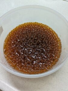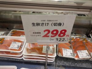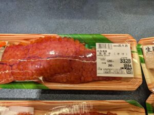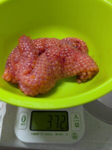 帰り道にスーパーへ立ち寄り、鮭や筋子の相場を調べてみました。筋子は100グラムあたり税抜1,280円、鮭の切り身は100グラムあたり税抜298円。帰宅後に購入した鮭から筋子を取り出すと372グラムあり、これだけでスーパー価格なら税込5,000円を超える計算。筋子だけでほぼ元が取れたことになり、とても満足感がありました。