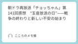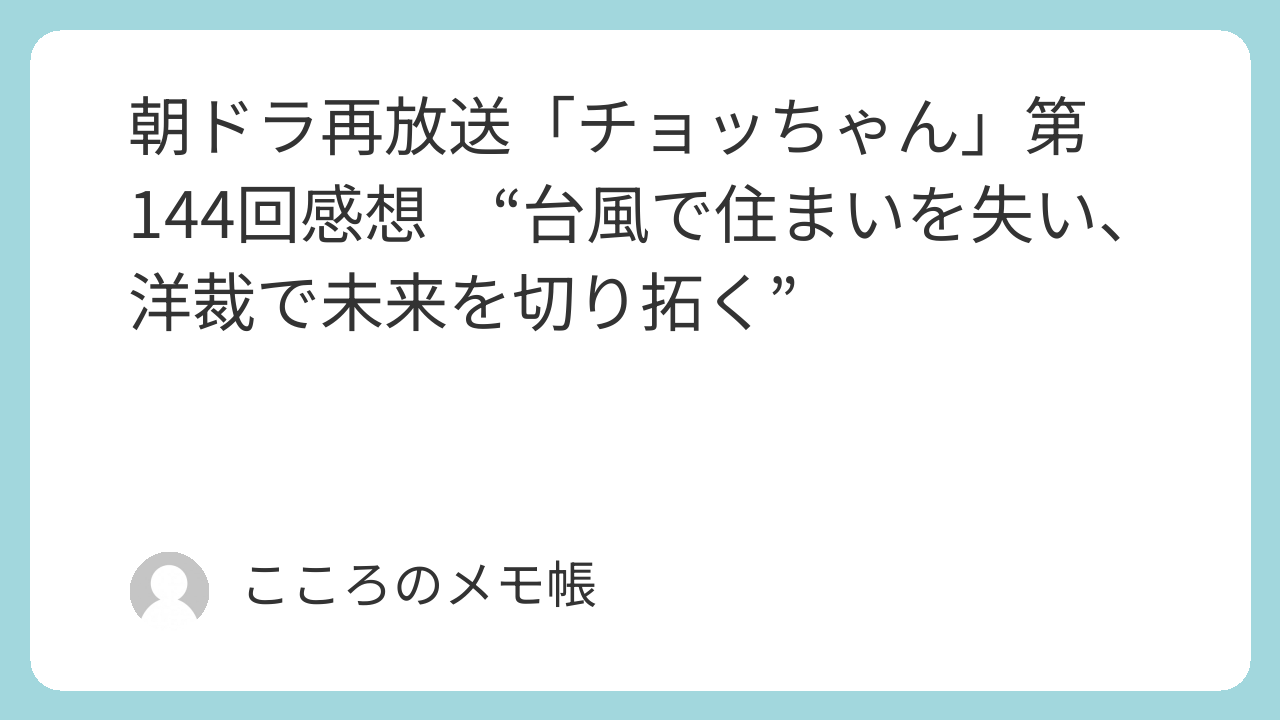 台風で小屋を失い、再びゼロからの生活に直面するチョッちゃん一家。しかし、喜作の尽力、富子の気骨、そして常子の温かな支援に支えられ、洋裁で未来を切り開こうとする姿が描かれた。泰輔の「運のなさ」と神谷先生の「運の強さ」の対比は、人の運命の皮肉を強く感じさせる。富子が悲観しても「雨露さえしのげればいい」と笑うチョッちゃんの楽観は、戦後の闇に差し込む光のようだった。一方で要のことだけは後ろ向きに考えてしまう弱さもあり、その揺れ動く心が視聴者の胸を打つ。駅近の新居と「洋裁承ります」の看板から、戦後の新しい物語が始まろうとしている。