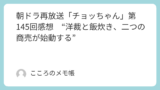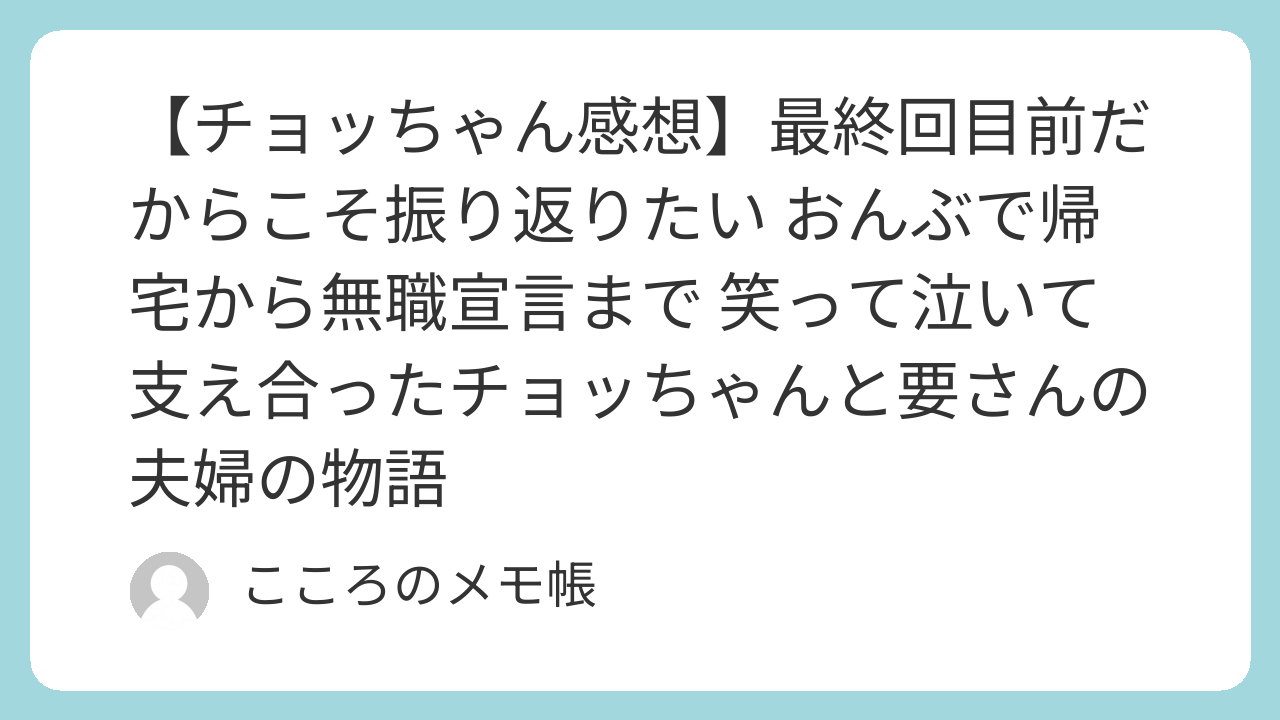 最終的には要さんが素直に「自分が悪かった」と謝り、チョッちゃんをおんぶして帰宅する姿に、思わず笑みがこぼれつつ胸が熱くなりました。