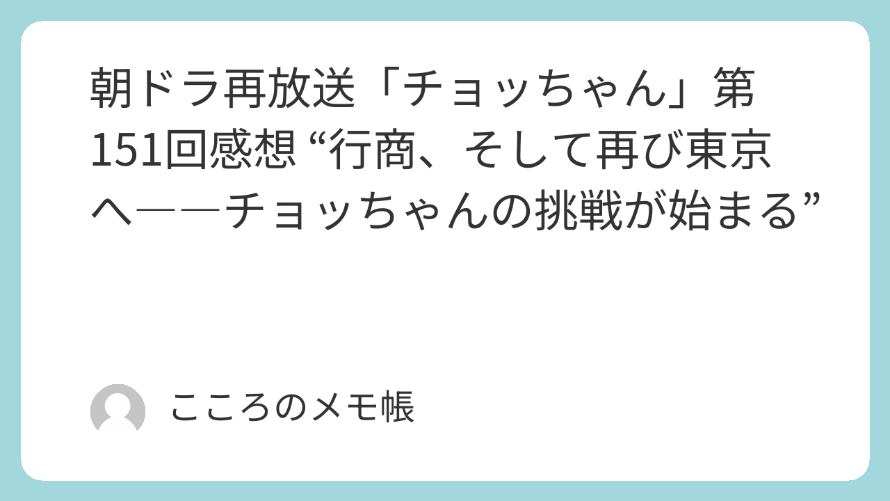 第151回は、チョッちゃんの新たな挑戦「行商編」が本格的に始まった回だった。