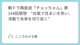 焦土から立ち上がる人々の姿に、チョッちゃんという作品が一貫して描いてきた「生き抜くことの尊さ」が、改めて浮かび上がる回だった。