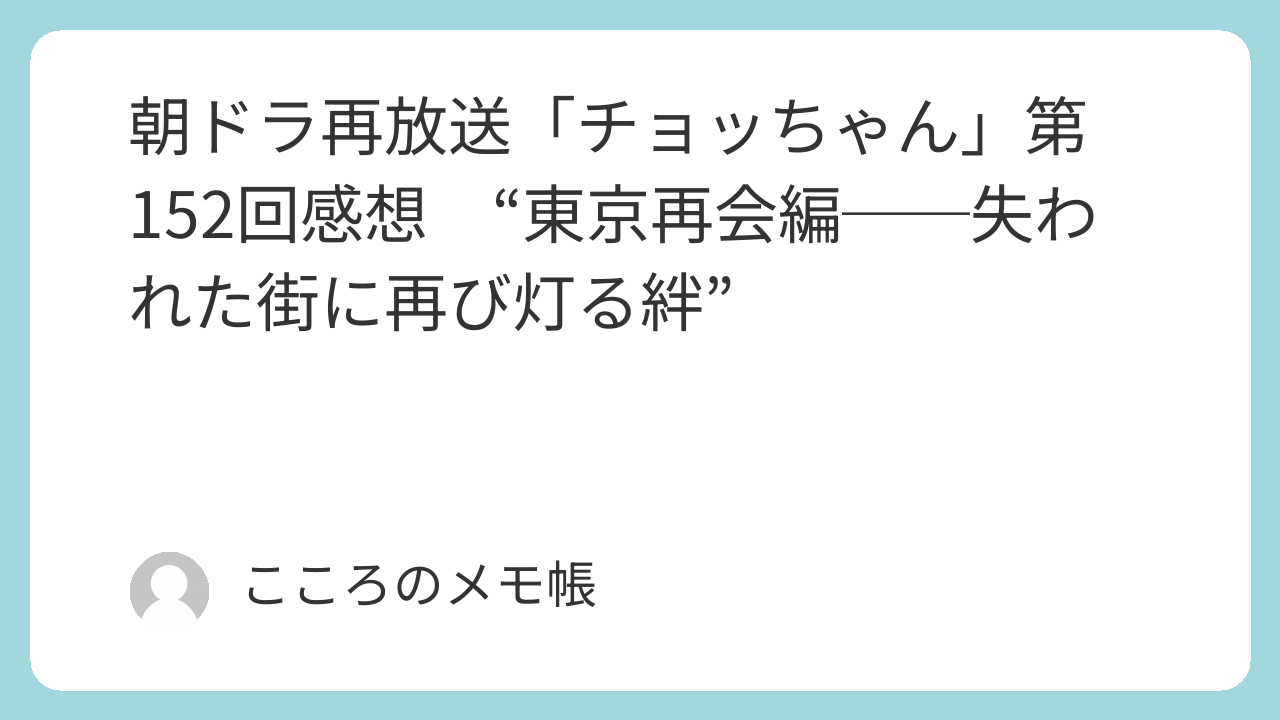 第152回は、「再会」と「希望の再建」がテーマだった。焼け野原の東京に、少しずつ人が戻り、かつての絆が息を吹き返す。闇市の喧騒も、ボロ小屋の笑い声も、どこか温かく、懐かしく、力強かった。
