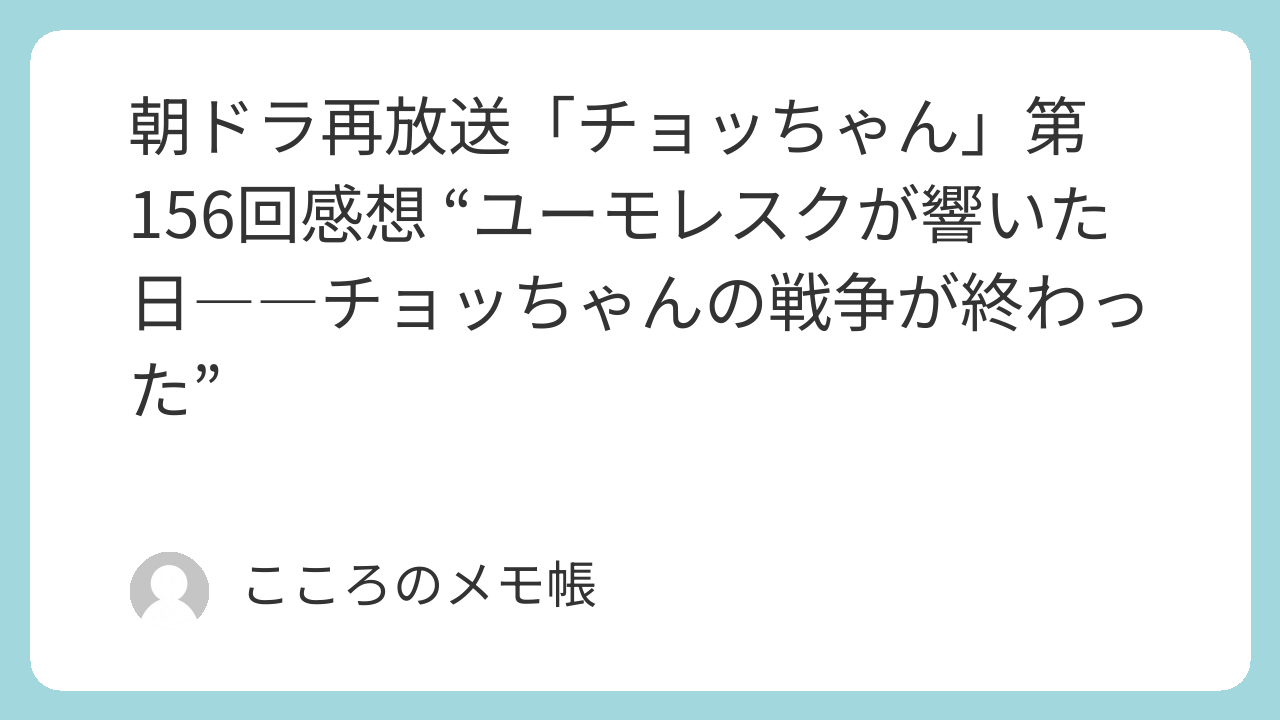 第156回(最終回)は、“戦争を越えて生きる”という物語の真の終幕だった。要が音を取り戻し、邦ちゃんが夢を取り戻し、音吉が笑いを取り戻した。そしてチョッちゃんは、どんな苦難の中でも花を見つける力――