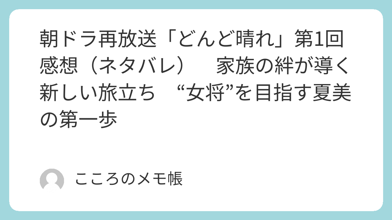 「どんど晴れ」というタイトルのように、明るく晴れやかな展開を期待したいと思います。