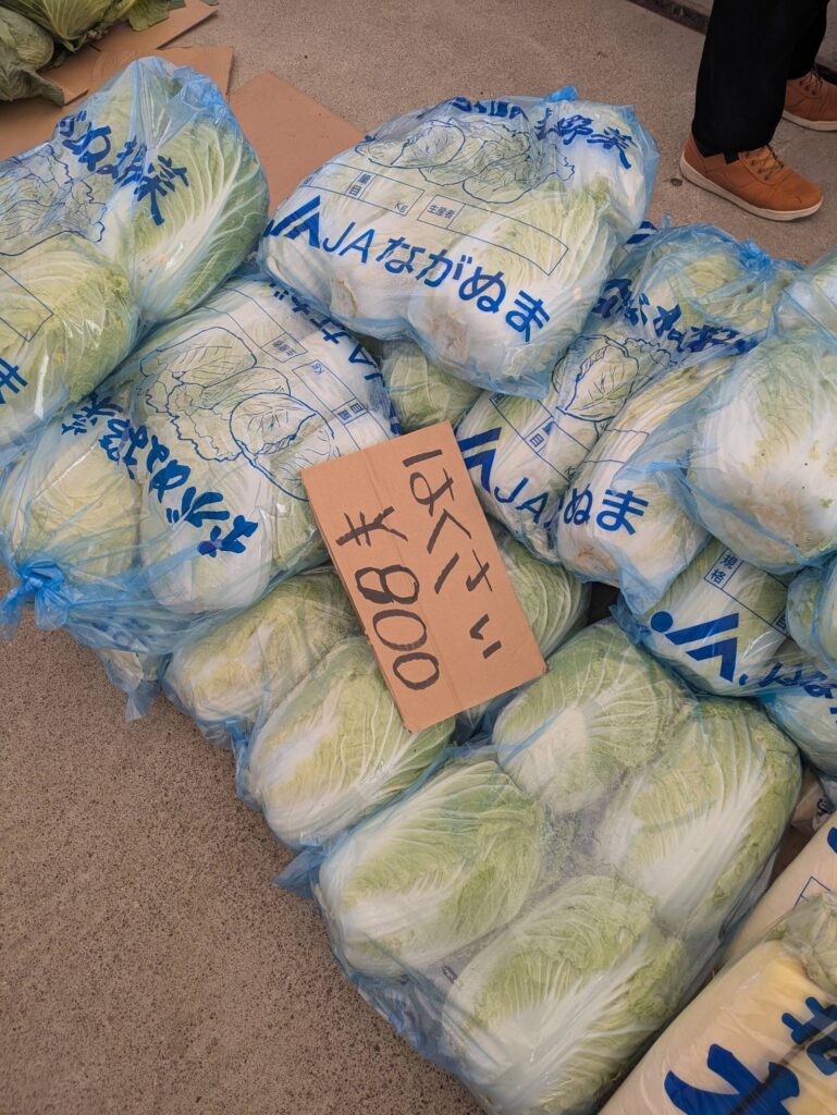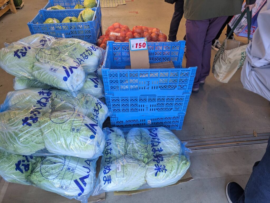 最初に訪れたマオイの丘ファーマーズマーケットはとにかく活気がありました。スタッフの方々も元気で、笑顔で声をかけてくれます。白菜や大根を台車いっぱいに買っていく人たちもいて、漬物用の野菜が人気のようでした。次に向かった西長沼ポケットパーク直売所は、小ぢんまりとした会場で混雑はなく、落ち着いて買い物ができる雰囲気。裏手には小さな公園があり、犬を連れていたので、そこで少し散歩もしました。大型犬には向かない規模ですが、静かでのんびり過ごせる場所です。