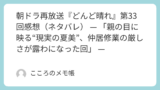今日の『どんど晴れ』は、その普遍的なテーマを静かに、しかし確実に伝えてくれた一話だった。