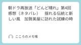 誰かを想うことは、時にすれ違いを生む。けれども、その不器用さの中にこそ、本当の優しさが宿る。今日の『どんど晴れ』は、そんな家族の温度を丁寧に描き出していた。