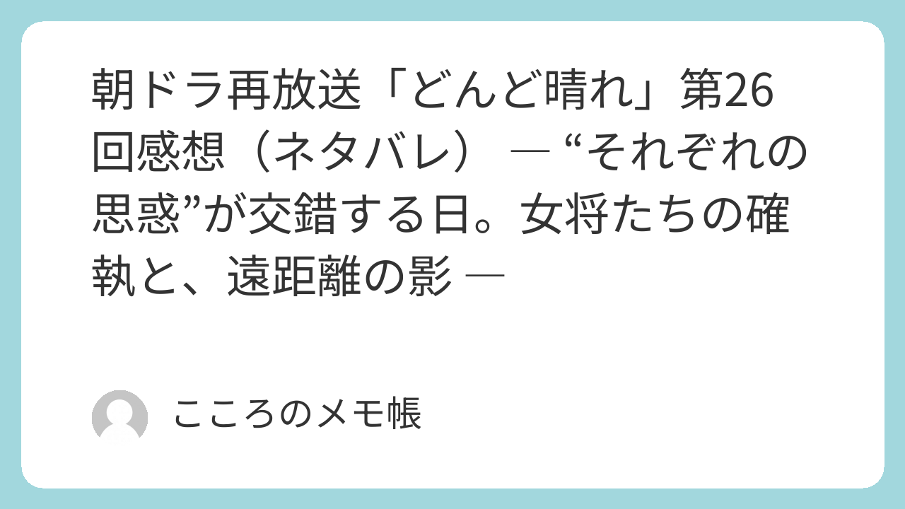 2025年11月11日(火)放送の『どんど晴れ』第26回。