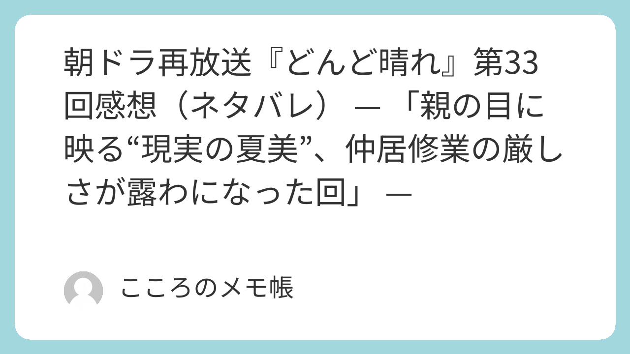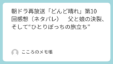 大人の親子同士の“膝枕”は一瞬驚いたけど、ようやく弱音を吐ける場所を見つけたという象徴的シーンだったと思う。盛岡ではずっと背筋を伸ばしていた夏美が、ようやく“娘の顔”に戻れた瞬間だね。