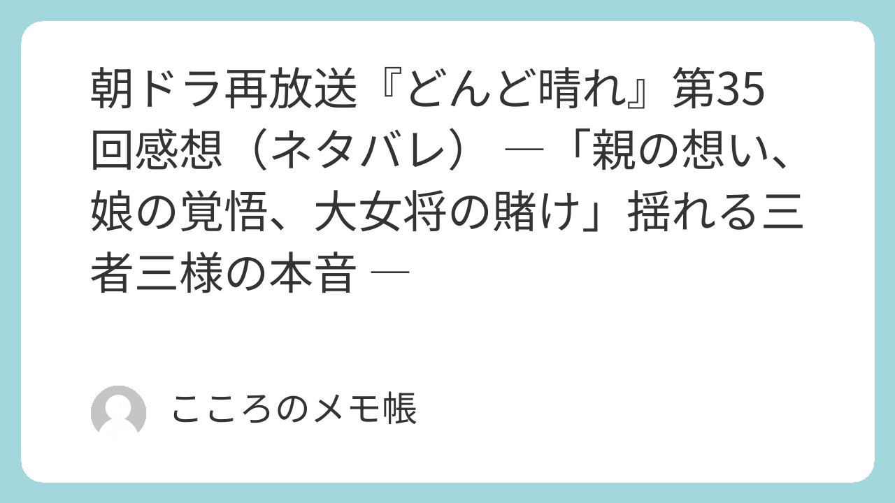 「誰も間違っていない」からこそ起こる最大の衝突。全員の気持ちが分かるからこそ、胸が苦しいシーン。夏美の怒り、両親の心配、大女将の信念──物語的に面白いのは、今回の対立には悪者が一人もいないという点。どれも間違ってないのがつらい。