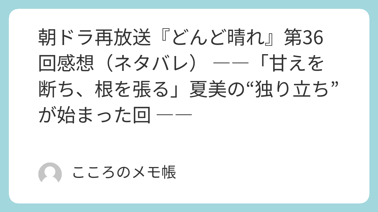 2025年11月22日(土)放送の『どんど晴れ』第36回。