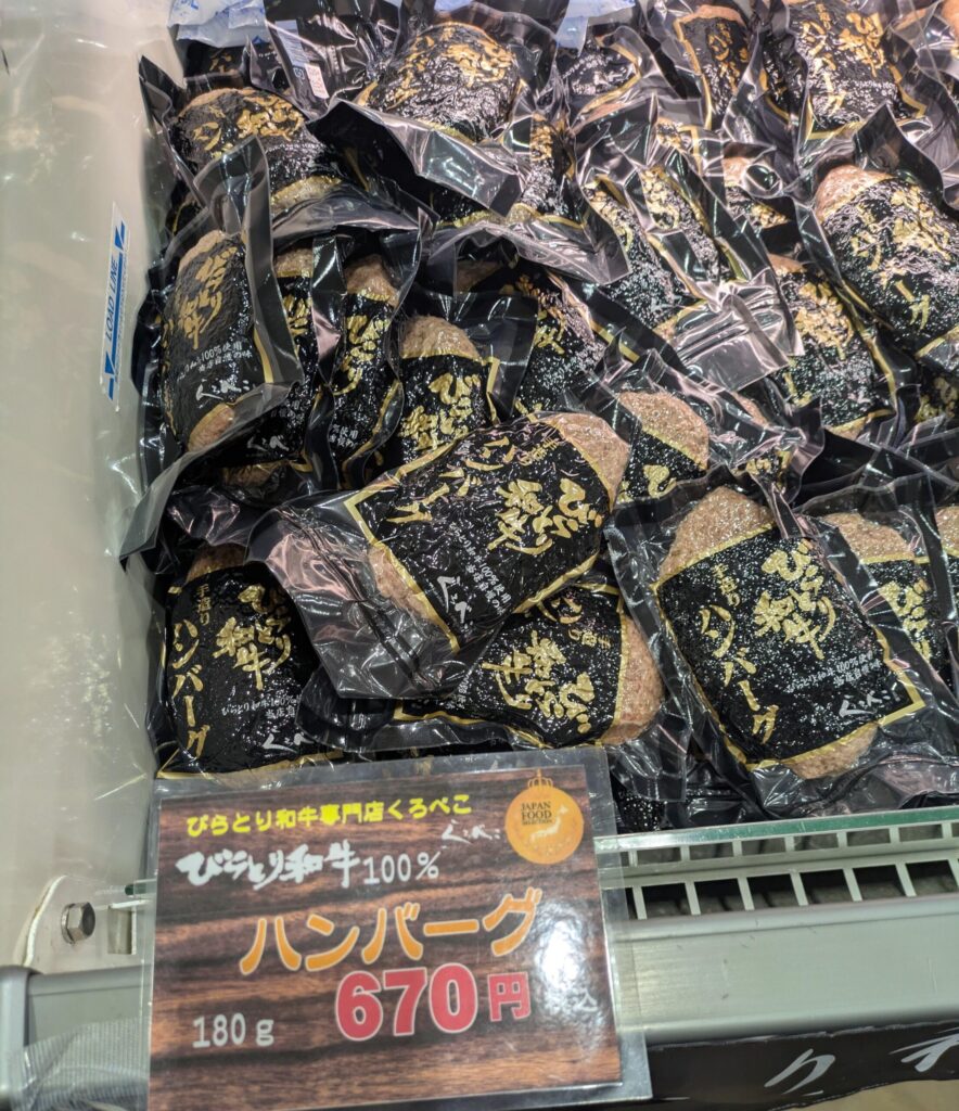 そのほか、幌加内の新そばとそばつゆ、びらとり和牛ハンバーグ(670円)も購入。幌加内そばのブースでは、新そばを二箱買うとそばつゆを安くしてくれるサービスもあり、ブースによってさまざまな“プラスα”があるのが魅力的でした。