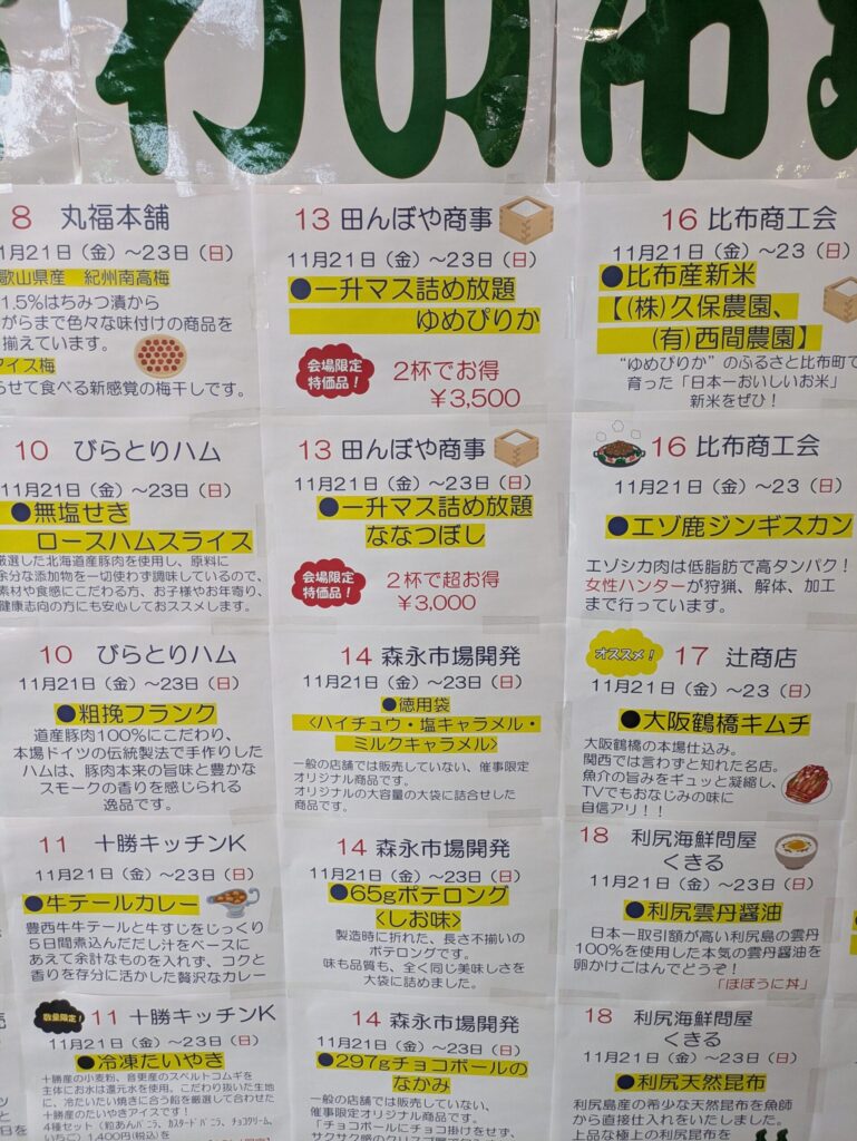 全体的に、試食も多く、スタッフのサービス精神も旺盛で、北海道の魅力を存分に味わえるイベントでした。来年もぜひ足を運びたいと思える、満足度の高い物産展です。