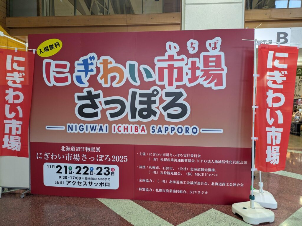 11月21日(金)から23日(日)まで開催された「第16回 にぎわい市場さっぽろ2025」に11月22日(土)行ってきました!北海道の魅力がぎゅっと詰まった人気の物産展で、今年も多彩なグルメや新鮮な食材が勢ぞろい。この記事では、実際に訪れた様子や購入した商品、会場の雰囲気などを詳しくレポートします。