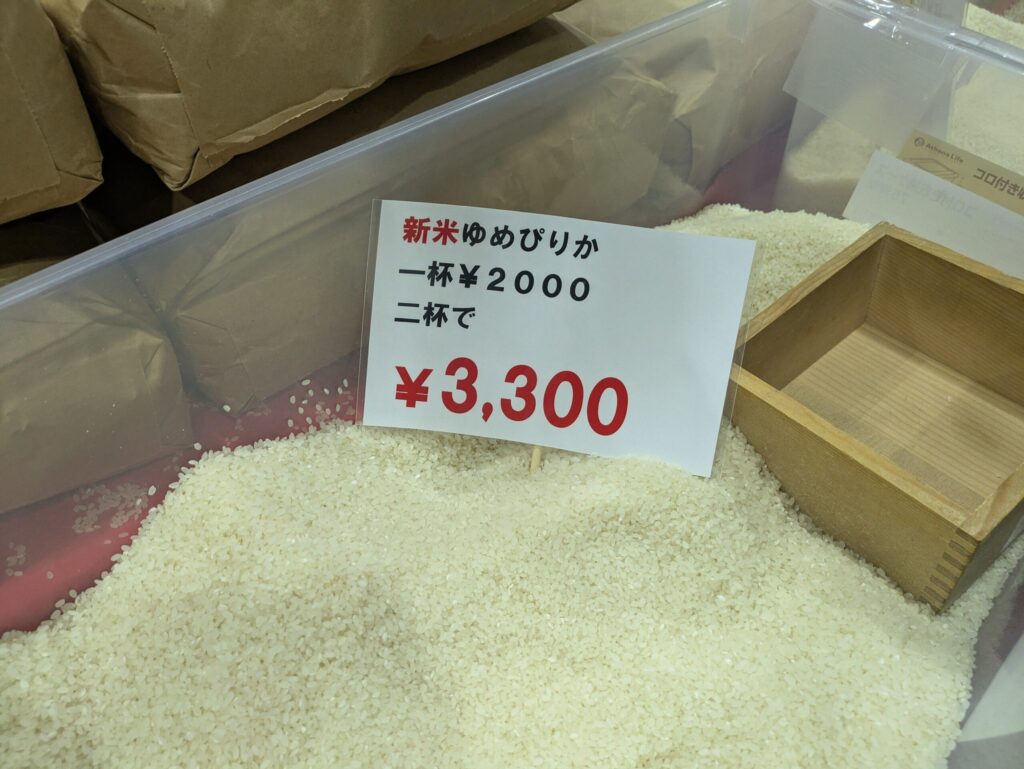 最も印象的だったのは、新米ゆめぴりか詰め放題の店員さんの言葉。