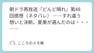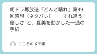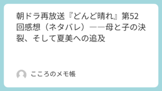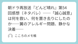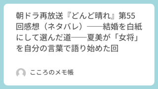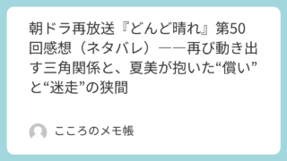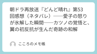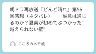 2025年12月17日(水)放送の『どんど晴れ』第57回は、夏美が再び盛岡に戻り、女将修業再開を懸けて“座り込み”を続ける回だった。平治の工房の前で、正座のまま、雨に打たれながら、「うん」と言ってもらえるまで帰らない――。その姿は、覚悟を貫...