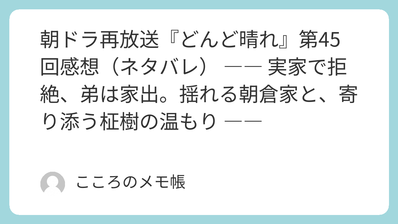 第45回は、「逃げること」「許されないこと」「支えること」が交錯する濃密な一話。啓吾の厳しさ、智也の反発、房子の揺れ、そして夏美の心の崩れ。そんな渦の中で、柾樹の“支える力”が際立つ回だった。