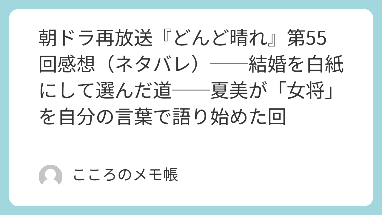 2025年12月15日(月)放送の『どんど晴れ』第55回は、