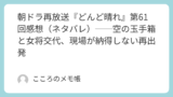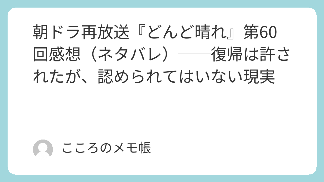 第60回は、表面的な再出発の裏に、次の対立と試練が仕込まれた回だったと言えるのかもしれない。