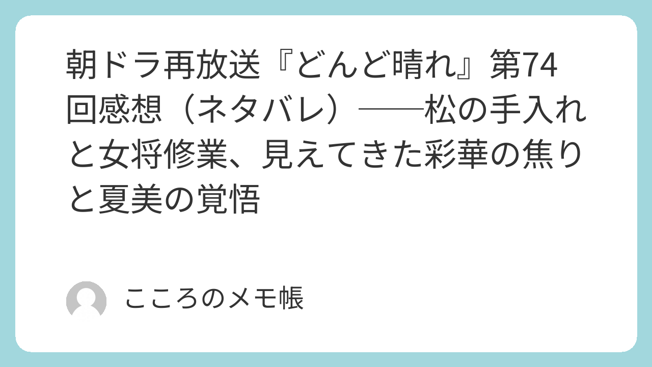 2026年1月13日放送の 『どんど晴れ』 第74回 では、女将修業のライバルとなった彩華と夏美が、まったく異なる場所で、それぞれの役割を与えられることになる。