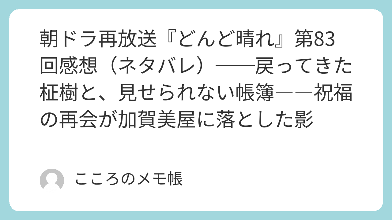 第83回は、幸せな再会と同時に、加賀美屋の内部に潜んでいた緊張が表面化した回だった。