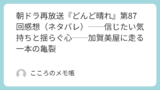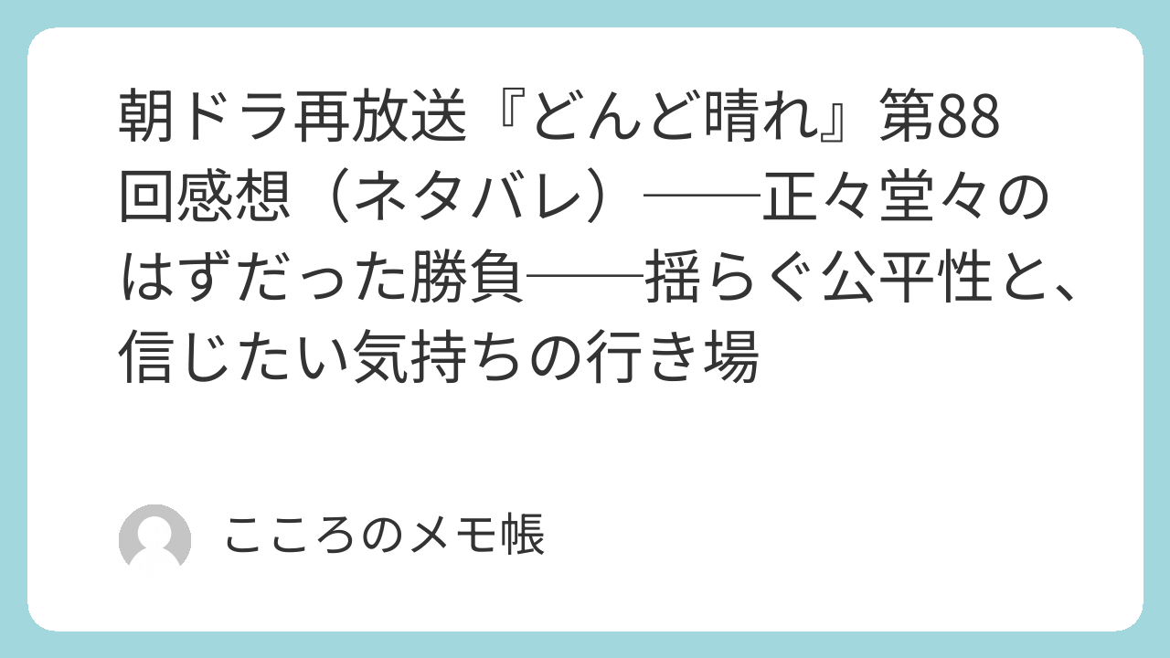 2026年1月29日放送の 『どんど晴れ』第88回は、女将修業対決が「第三者による公平な評価」で決着するはずだった前提が、早くも揺らぎ始める。