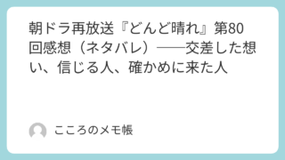どんど晴れ 朝ドラ再放送『どんど晴れ』第80回感想(ネタバレ)──交差した想い、信じる人、確かめに来た人