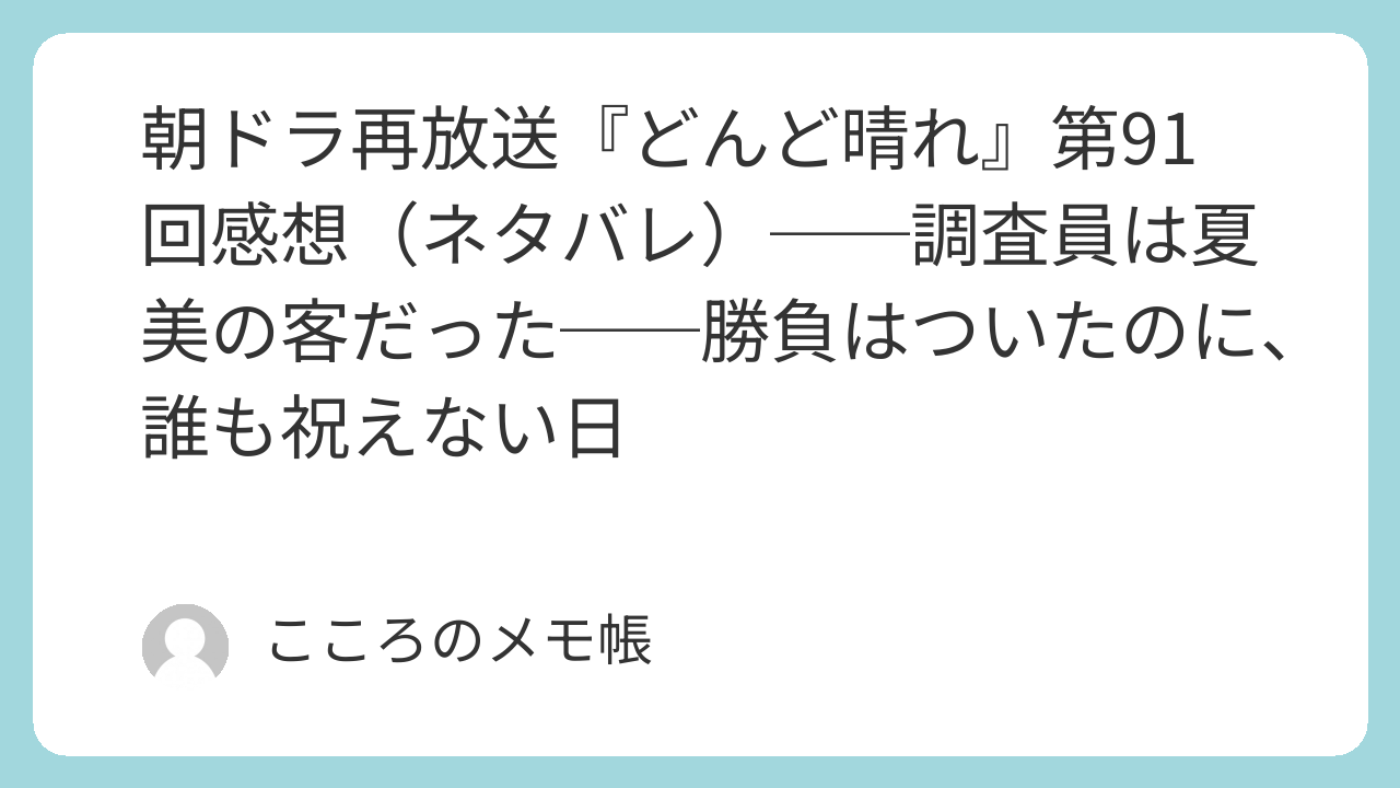 一方、事情を知らない夏美は、自分のおもてなしが評価されたことを素直に喜んでいる、というナレーションで放送は終了する。