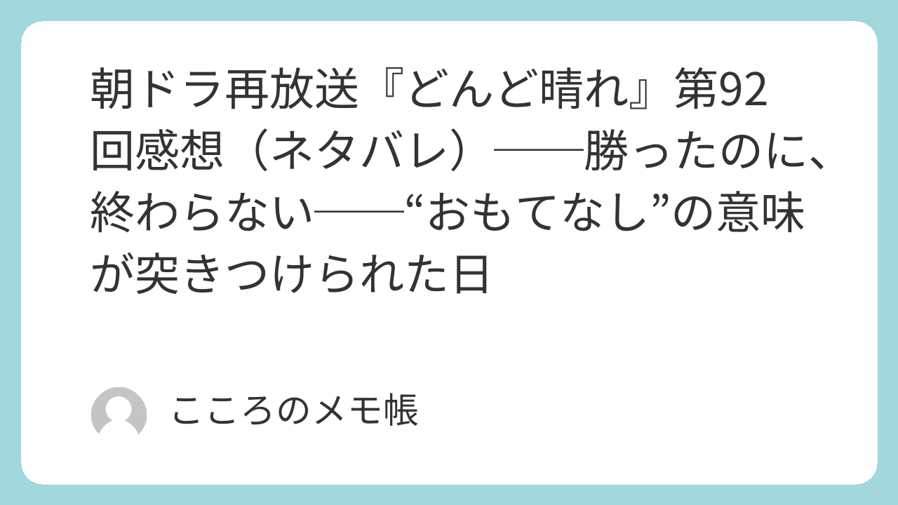2026年2月3日放送の 『どんど晴れ』第92回は、雑誌に掲載された記事によって、