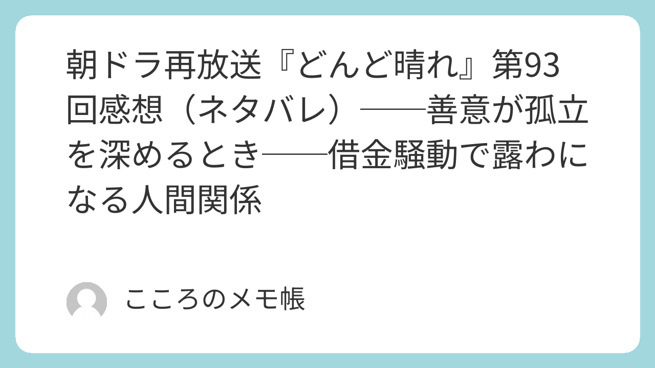 2026年2月4日放送の 『どんど晴れ』第93回は、