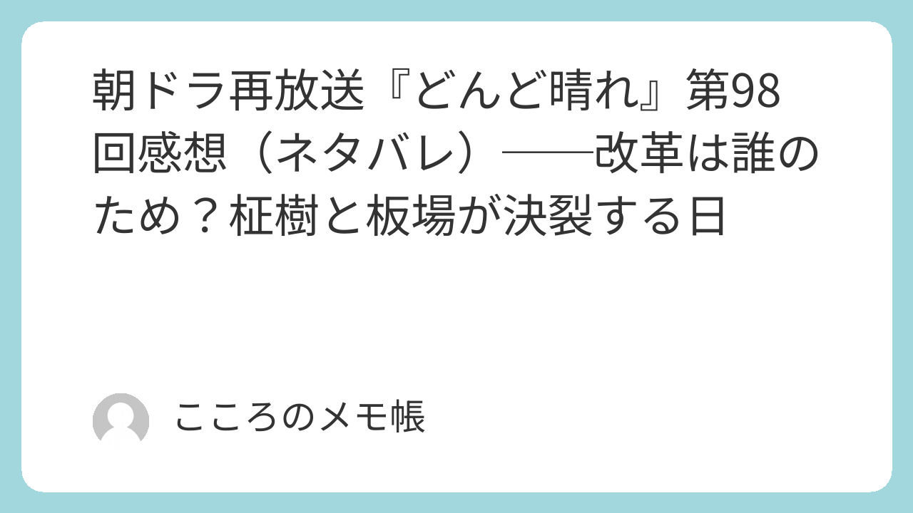第98回は、改革の痛みと人間関係の歪みが浮き彫りになる回だった。