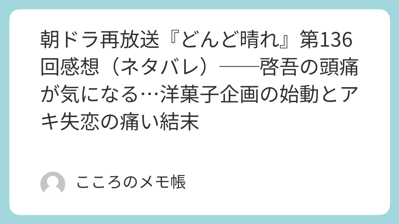 第136回は、加賀美屋の新しい企画が動き出す明るさと、イーハトーブで静かに終わってしまうアキの恋が並行して描かれた回だった。横浜では啓吾が夏美に頼まれた加賀美屋オリジナルの洋菓子について考え、加賀美屋でもその話題で盛り上がる。夏美が若女将として“新しい加賀美屋”を形にしようとしている流れはかなり前向きだ。だがその一方で、イーハトーブではアキが思い描いていた家族の形が裕二郎には届かず、思いは実らないまま終わってしまう。今回は、新しいものが生まれようとする喜びと、もうそこにはいられないと感じた人の切なさが、同じ回の中に同時に置かれた回だった。