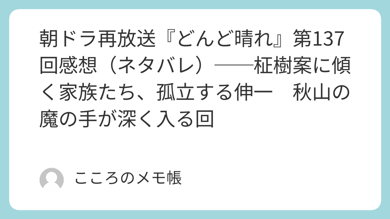 そして最後の時江との場面で、伸一が単なる浅はかな人間としては描かれていないのも、この回をややこしくしていた。権力や株の話よりも、加賀美屋にとって本当に何がいいのかを悩んでいる。その意味では伸一もちゃんと加賀美屋のことを考えている。ただ、その迷いを向ける相手が秋山である以上、もうかなり危ないところまで来てしまっている。第137回は、加賀美屋の未来の話をしているようでいて、実は家の中で誰が中心で、誰が外へ押し出されていくのかをかなり残酷に見せた回だったと思う。