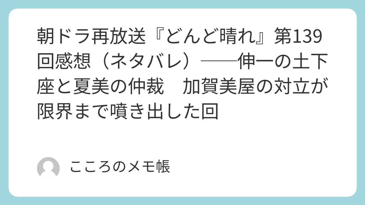一方で、その“猶予”が新たな火種も生んでいるのも確かだった。環は納得していないし、柾樹も飲み込めていない。時江も秋山を信用していないだろう。それでも伸一だけはますます秋山に依存していく。つまり今回得られたのは解決ではなく、たった一度の猶予に過ぎない。そしてその猶予の先で、次に誰が単独で動き出すのかを考えると、むしろ柾樹の方が危うく見えてくる。第139回は、加賀美家の分裂がついに表面化した回であると同時に、ようやく“本当の意味での話し合い”が始まるかもしれない、その入り口がやっとできた回だったと思う。