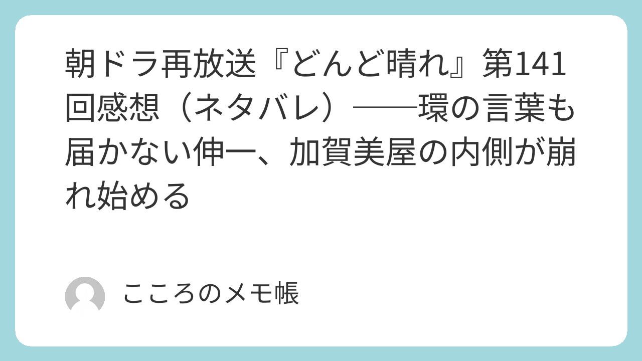 そしてラストでは、柾樹がようやく秋山の正体を事実ベースで追い始めた。外資のリゾート開発の影が見えてきたことで、秋山が単なる怪しい個人ではなく、もっと大きな流れの一部かもしれないという感じが強まった。ただ、真相に近づきつつある一方で、柾樹はまた一人で抱え込み始めているようにも見えるし、夏美は何か良くないことが起こりそうだと感じ取っている。第141回は、表向きには大きな爆発が起きた回ではないけれど、家族、従業員、そして外国資本の影まで含めて、加賀美屋の危機が静かに、でも確実に深まっていくのを感じる回だった。