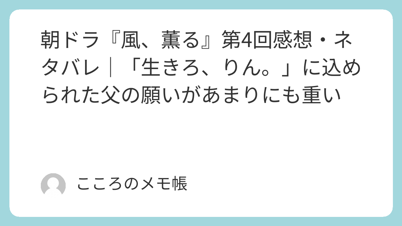ただ悲しいだけではなく、父が最期に娘へ残した言葉があまりにも深い。「生きろ、りん。」という一言は、これから先のりんの人生そのものを動かす言葉になっていくのだろうと思わされた。