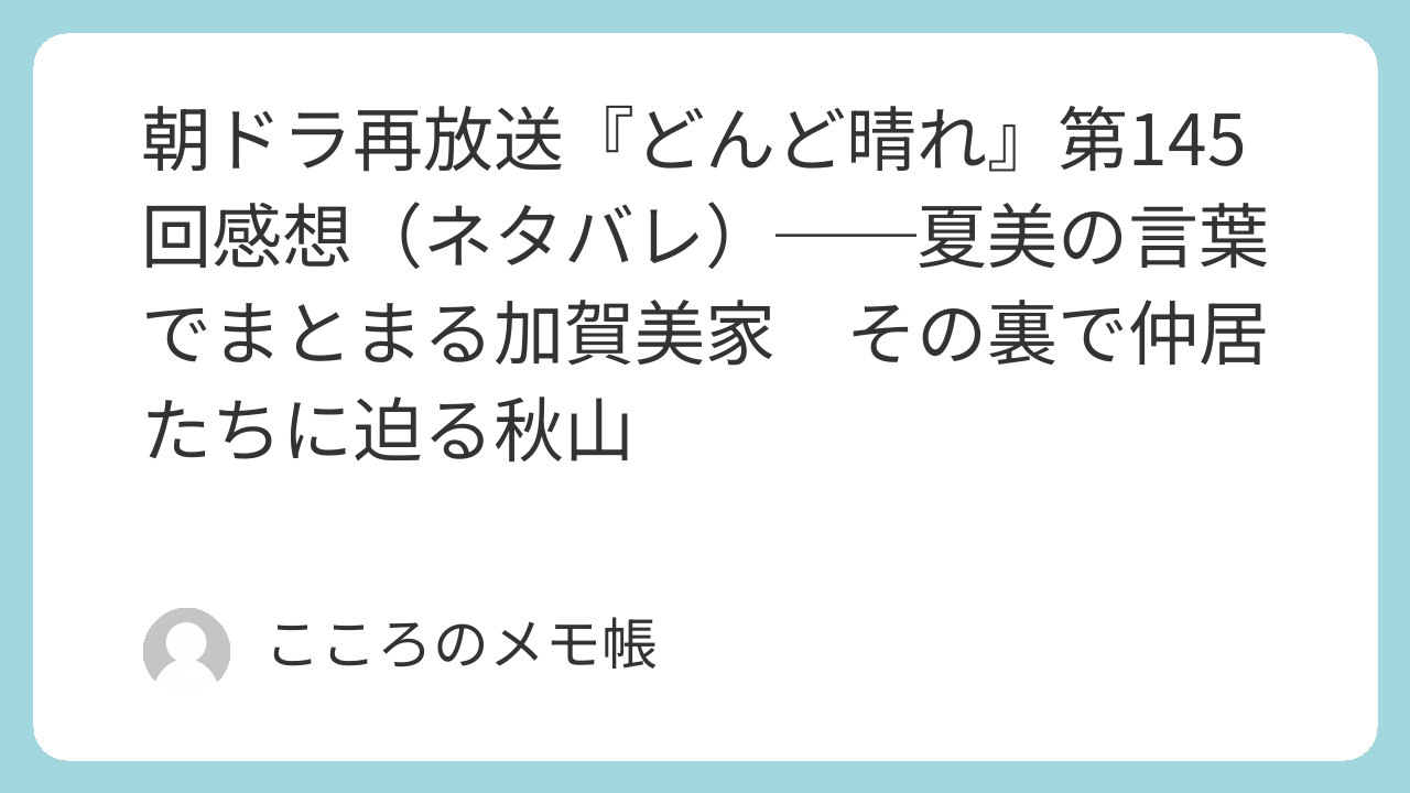 第145回は、前回の重苦しい謝罪の空気から一転して、ようやく加賀美家が本音をぶつけ合い、もう一度ひとつにまとまり直す回だった。夏美は「加賀美屋は一番大事なものを失っていない」と言い、その核にあるのは180年受け継がれてきた「おもてなしの心」と「家族の和」だと語る。柾樹も浩司も、自分たちが伸一を孤立させたことを認め、家族はようやく責め合いから再建へと向き直り始めた。ただその一方で、秋山はもう次の手を打っている。家族がまとまりかけたなら、今度は仲居たちの側から加賀美屋を崩しにくる。今回は、再生の希望と新たな不穏が同時に置かれた回だったと思う。