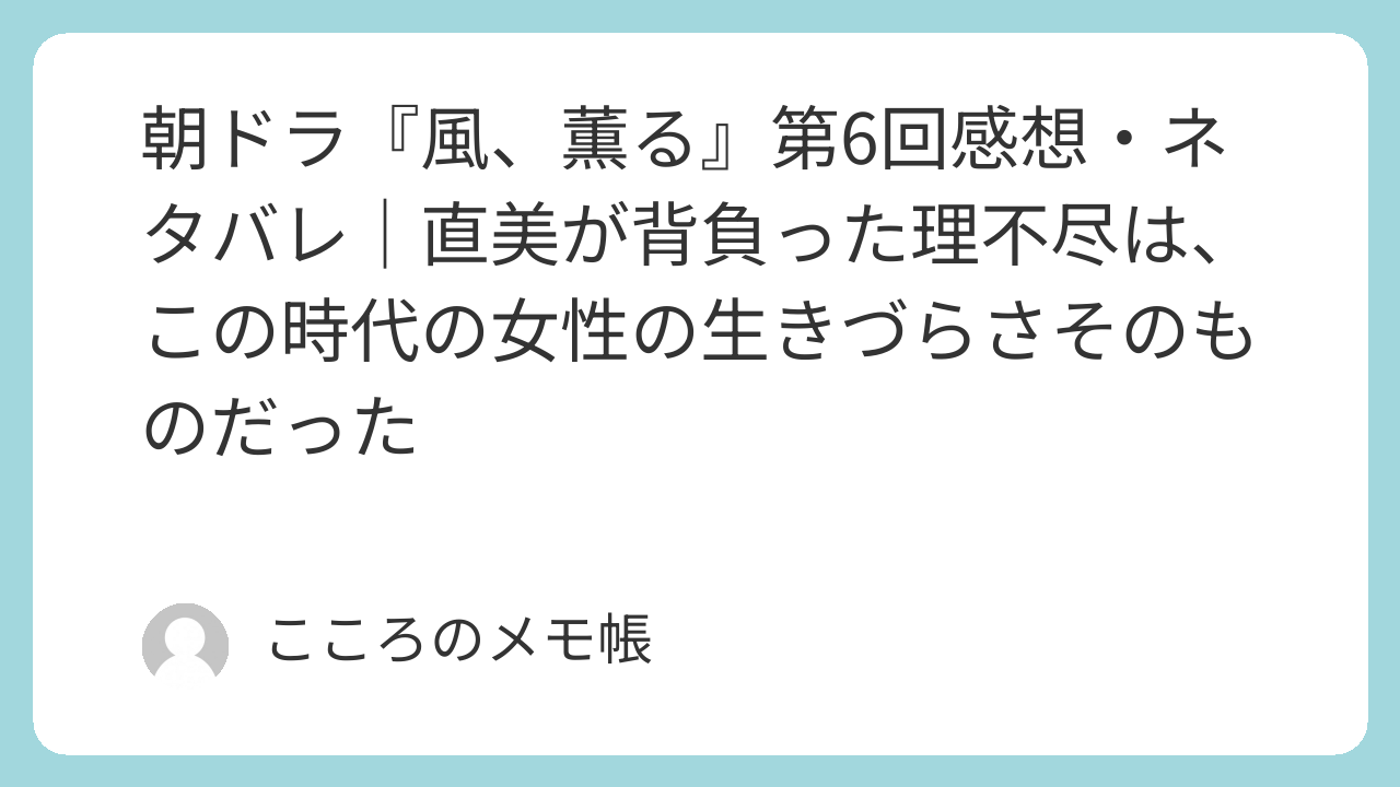 2026年4月6日放送の『風、薫る』第6回は、りんと直美がそれぞれ違う形で「女性が自分の足で生きること」の難しさにぶつかる回だった。りんは結婚によって生きようとし、直美は働いて生きようとする。けれど、そのどちらの道も簡単ではない。時代の不自由さが、二人を別々の形で追い詰めているのがよく分かった。