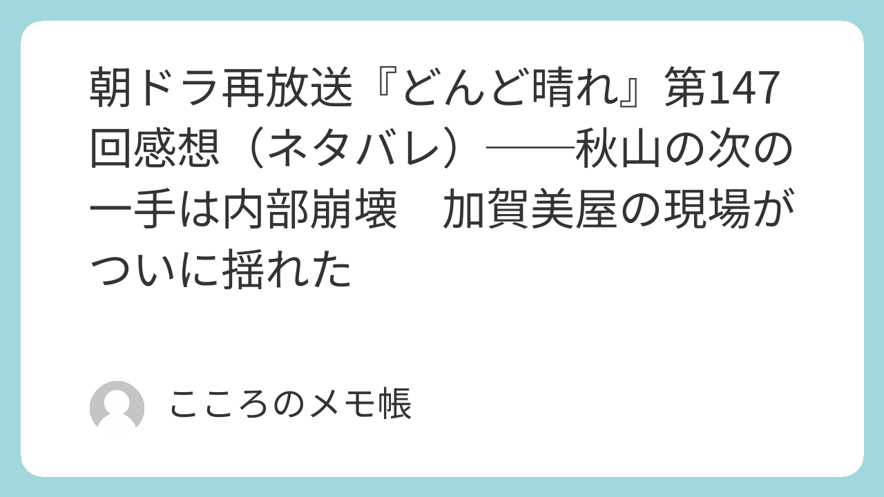 夏美が土下座して引き止める場面もかなり重かった。前回の伸一の土下座は、自分のしでかしたことへの謝罪だった。でも今回の夏美の土下座は違う。若女将としての言葉も、情も、説得も届かず、最後には人として頼むしかなかった土下座だ。つまり今回は、家族が一つになることでは越えられない壁があることがはっきり見えてしまったんだと思う。第147回は、加賀美屋の危機がついに現場の機能停止と人材流出にまで進んだ回だった。そして同時に、老舗旅館の美しさの裏にあった労務の歪みを、秋山に容赦なく突かれた回でもあったと思う。