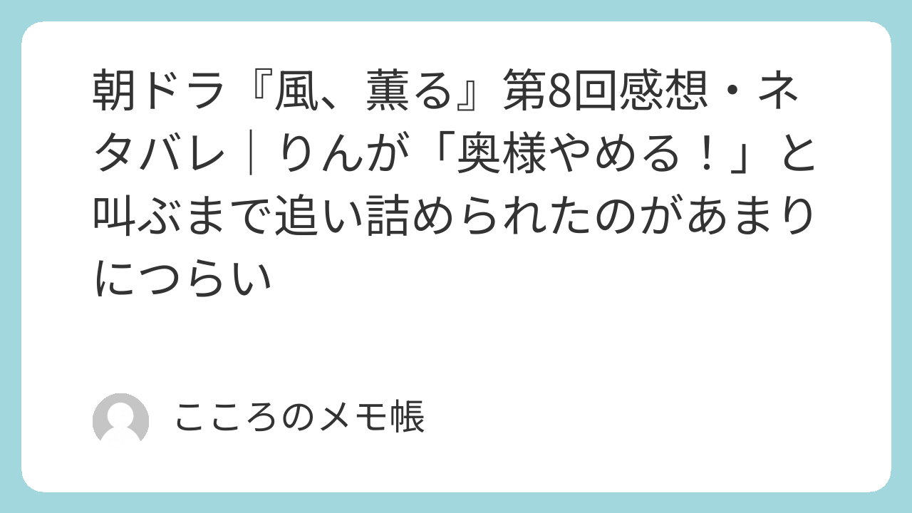 👆見逃し配信中 pic.twitter.com/bFeaa48Fgy— 朝ドラ「風、薫る」公式 (@asadora_nhk) April 8, 2026
