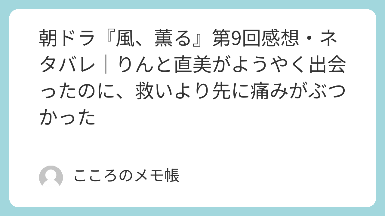 2026年4月9日放送の『風、薫る』第9回は、りんと直美がようやく出会う回だった。しかしその出会いは、運命的で美しいものというより、互いの生きづらさがぶつかり合う苦い出会いだった。りんも直美もまだ、自分がどう生きたいのかを見つけられていない。だからこそ、余計にふらつき、見栄を張り、逃げたくなる。