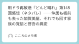 そして最後にやっぱり強かったのが、啓吾が意識を取り戻して最初に夏美へ伝えた「すぐに戻れ」という言葉だ。自分の声が以前のように出ないこと、右手が思うようでないこと、その現実を受け止めた直後に、自分の不安を訴えるのではなく、夏美に戻れと書く。これはかなり啓吾らしいと思った。表面だけ見れば冷たい。でも実際には、「自分を理由にお前の居場所を見失うな」という父親なりの愛情なんだろうなと思う。夏美の困り顔がすべてで、父のそばにいたい娘としての気持ちと、父本人から加賀美屋へ戻れと言われる苦しさがそこに全部出ていた。第149回は、加賀美屋の持久戦がさらに厳しさを増す回であると同時に、夏美が若女将である前に朝倉家の娘であること、そしてその娘がどこへ立つべきかを、父親自身に突きつけられる回だったと思う。
